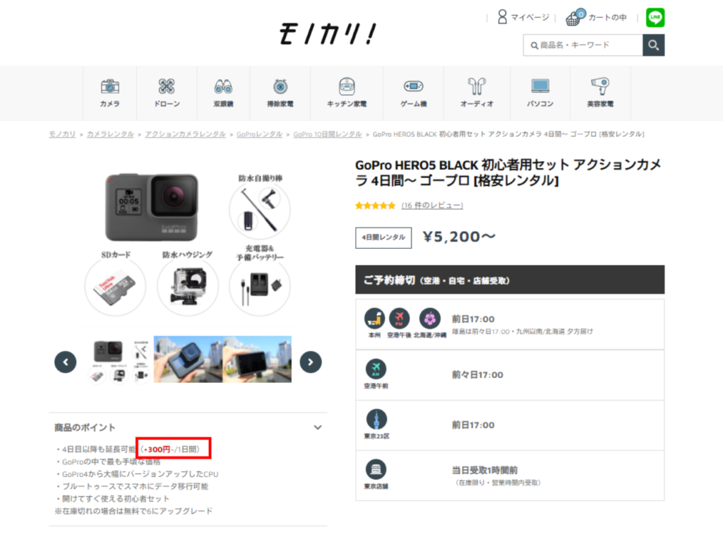 2021.10.19 Q&A:延長料金はいくらですか? 1日あたりの追加金額は、商品ページの「レンタル料金」の欄で確認できます。 最初からレンタル日数を多めに指定した場合でも、レンタルの最中に延長をした場合でも、1日あたりの追加金額は同じです。 ただしレンタルの最中に延長を申し込む場合、次のお客様のレンタル予約状況によっては受付けられない場合があります。 投稿ナビゲーション過去の投稿: GoProの初期設定と簡単な撮影方法・使い方まとめ次の投稿: Q&A:注文完了メールが届きません